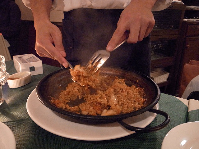 「今日はロゼのワインがお勧め!」というシェフの言葉でまずはロゼをいただき、お料理はトレスプラトスのコースを3人前頼んで、チョイスできるお料理は違う種類を頼む!いつも、いろいろ味わいたいものでみんなでシェアしちゃうんです。でも我が家にとってパエリヤは絶対にはずせないメニューなので、パエリヤのミニマム単位2人前は必ず注文します。今日の肉料理は子ヤギ!これもおいしそうだったのでオーダーしました!デザートも各自好みのものを頼みます。当然3品、いろいろ食べられます。。。と、こんなお行儀の悪い?シェアも許してくれちゃう、プレートも用意してくれちゃうお店なんです。わたしは、ここのシェフに料理の仕方を教えてもらいます。「おいしい!これ、どうやって作るの?」と聞くと、快く教えてくれますよ。教えていただいた材料や方法で作ってみると、全く同じ味に!!まではいかないけれど、そこそこの自分の新しい味を作ることができます。今回私がおいしくて「どうやって??」と尋ねたのは、パエリヤにつけておいしい「マヨネーズ」とデザートの「イチジクのシャーベット」。これは、まだ、私は作ってみてないけれど、教わった作り方をこの記事に書きますね!私たちの頂いたお料理写真はUPしますが、もっとたくさんのおいしいお料理はドスガトスさんのサイトでじっくり見てください!