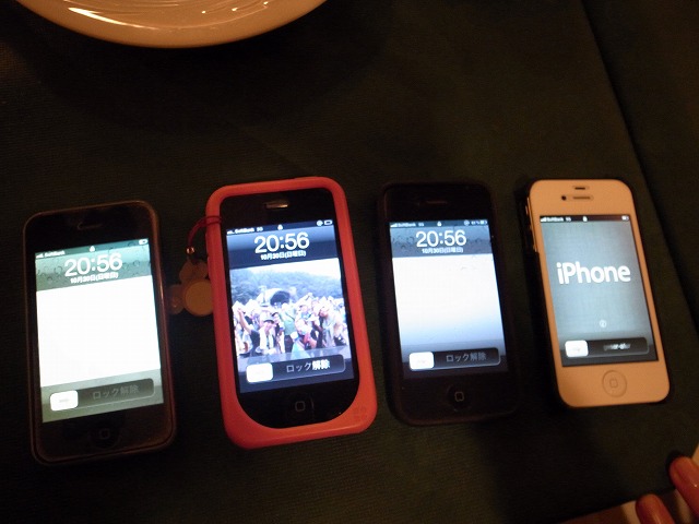 写真は左から夫の旧iPhone3, 娘のiPhone3s,私のiPhone4,夫の新iPhone4s(通称パンダフォン)