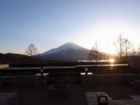 東京の24日土曜日は雨。。。 和やかな両家のお食事会中は雨模様でした。こんなお天気ではせっかく大きな富士山を見てもらおうと思ったイベントも当初の目的が達成できないのかな・・・と半ば暗い気持ちで山中湖にむかいましたが、さにあらず!お天気は回復、夕日がまぶしい!!エクシブに到着するまでの車中からも富士山がきれいに見えて、喜んでもらえました。(一安心)