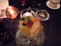 前菜からデザートまでで10プレート、やはり6品目あたりでお腹もいっぱいになってきました。個々のお料理は見た目もきれい、量的にも少なめでこれはデザートまで美味しくいただけるわ!と思っていたのですが、少量でも、ソースやスープ、フォァグラなど、どっしりと食べごたえがあるものですね。7番目に出てくる黒毛和牛のステーキまでにかなり苦しい状態で…。(もちろん若い人たちにとっては適量だったように見受けましたが)