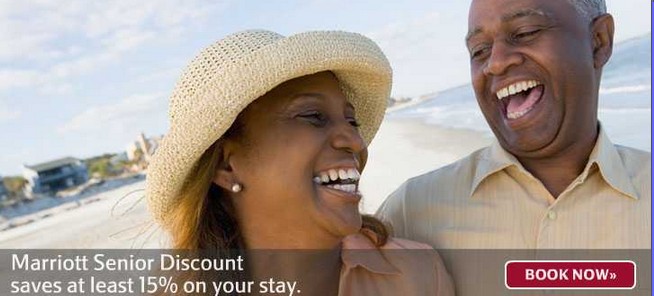 マリオットの公式ウエブサイトの、Special Rates & Awards の中にある、Senior Discount にチェックを入れて、ホテル検索します。