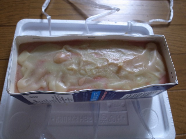 今日は石鹸作りの過程を見てもらうために緊張しながら(いつも自分仕様では緊張しないのですが・・・)牛乳パック1本分のバッチ600で石鹸を仕込みました。