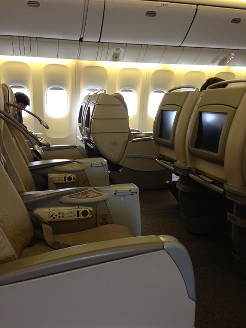 左の写真は搭乗したアシアナの103便、クルーの方が多いかな?と思えるような乗客数でした。