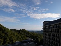 宿泊した2bedroomのお部屋は7階。バルコニーから六甲の山々の緑が目に優しく映り、目線を下に向けると洋風な中庭が見える。その中庭が夜になるとシックできれいなライティングで独特の雰囲気に変わります。