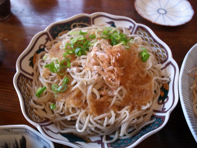 出てきた煮物をみて、ハッとしました。最近こんなに丁寧に素材別に煮物を作ってないなぁと。。。食べてみても出汁の味で素材の味を引き出していて、とてもおいしい。 本当に、こういったものをゆっくり味わって食べることが身体にもいいのでしょうね。トマトの寒天ゼリーもちょっと硬めで、昔懐かしいゼリーの味がしました。出し巻き卵も熱々でふわふわ!みょうがと揚げナスの入った野川蕎麦はつゆにつけて食べます。おろし蕎麦はすでに味が付いていてそのままいただけます。お蕎麦の量もたっぷり目でボリュームまんてん。