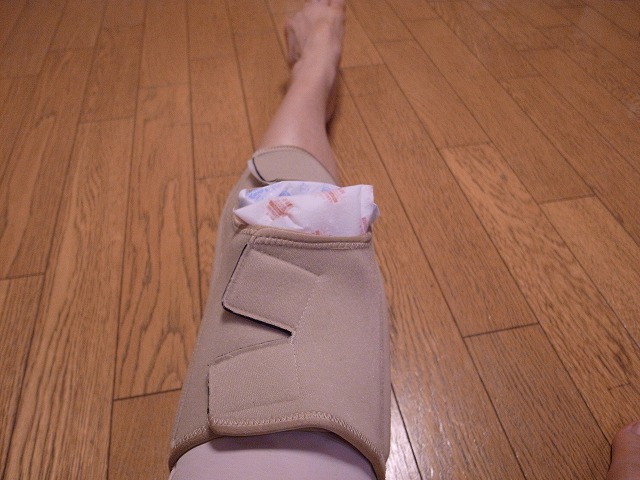 いろいろな思い出のあるサポーター、10年たってのお役目は、サポーターの間に冷たい保冷剤を挟み込んで私の左ひざを守ってくれてます。