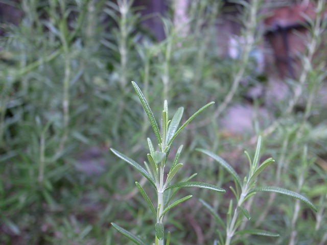 Rosmarinus officinalis (ロスマリヌス オフィキナリス)と読みます。ローズマリーのことです。